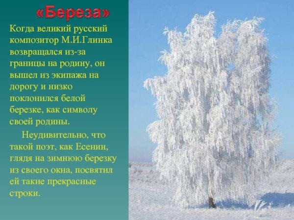 Иллюстрация к знаменитому стихотворению Сергея Есенина "Береза" представляет собой великолепный образ природы, который сочетает в себе красоту и нежность. На заднем плане изображена высокая и грациозная береза, ее ветви легко покачиваются на ветру, словно танцуют под мелодичные звуки природы. Листья березы, словно маленькие зеленые капельки, добавляют яркости и свежести общей композиции. Вокруг дерева расстилается зеленая трава, которая создает ощущение спокойствия и умиротворения. Через прозрачные лучи солнца, проникающие сквозь ветви, на фоне виднеется чистое голубое небо, придающее картине атмосферу безмятежности и свободы. Иллюстрация к стиху "Береза" воплощает в себе всю прелесть природы и позволяет читателю или зрителю окунуться в мир поэзии и красоты.