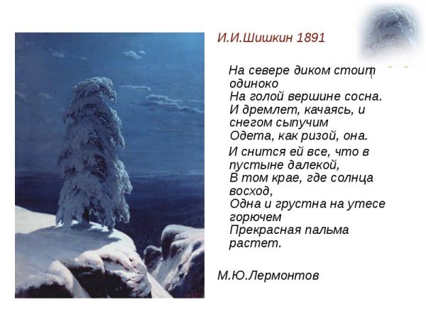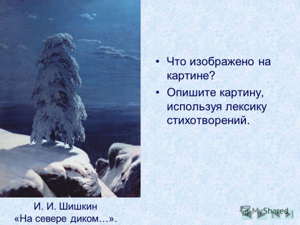 Иллюстрация к стиху "на севере диком" представляет собой воплощение суровой и непроницаемой красоты северных ландшафтов. Она передает атмосферу холода, мощи и таинственности этого дикого уголка земли. Через гармоничное сочетание цветов и линий, иллюстрация позволяет прочувствовать бескрайние ледяные просторы, вечную зиму и живую природу, спрятанную под слоем снега. Каждая крошечная деталь на рисунке отражает удивительное разнообразие северной флоры и фауны, а также мощь и силу природных явлений, которые часто бывают неуловимыми для человека. Иллюстрация к стиху "на севере диком" - это окно, открывающееся перед нами, чтобы погрузиться в мир дикой и неукротимой природы, где каждый элемент олицетворяет ее суровую и притягательную красоту.