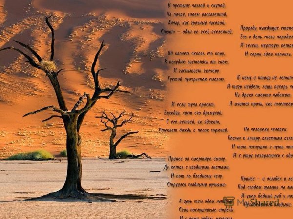 Наша иллюстрация к стиху "анчар" воплощает в себе яркую и эмоциональную картину, описывающую путешествие главного героя. Стремительные линии и контрастные цвета передают ощущение движения и напряжения, которые переживает анчар в своем путешествии. Взгляд зрителя приковывается к деталям изображения, словно он сам становится частью этой увлекательной и опасной приключенческой истории. Каждый штрих мастера передает настроение произведения, обогащает его смысл и раскрывает глубину каждой строки стихотворения "анчар". Эта иллюстрация не только визуально привлекательна, но и помогает зрителю лучше понять и воссоздать в собственном воображении всю магию и таинственность этого текста.