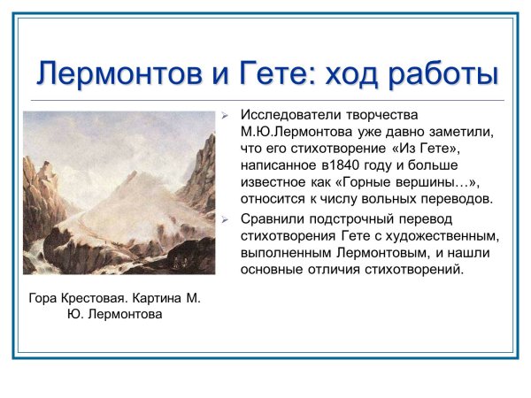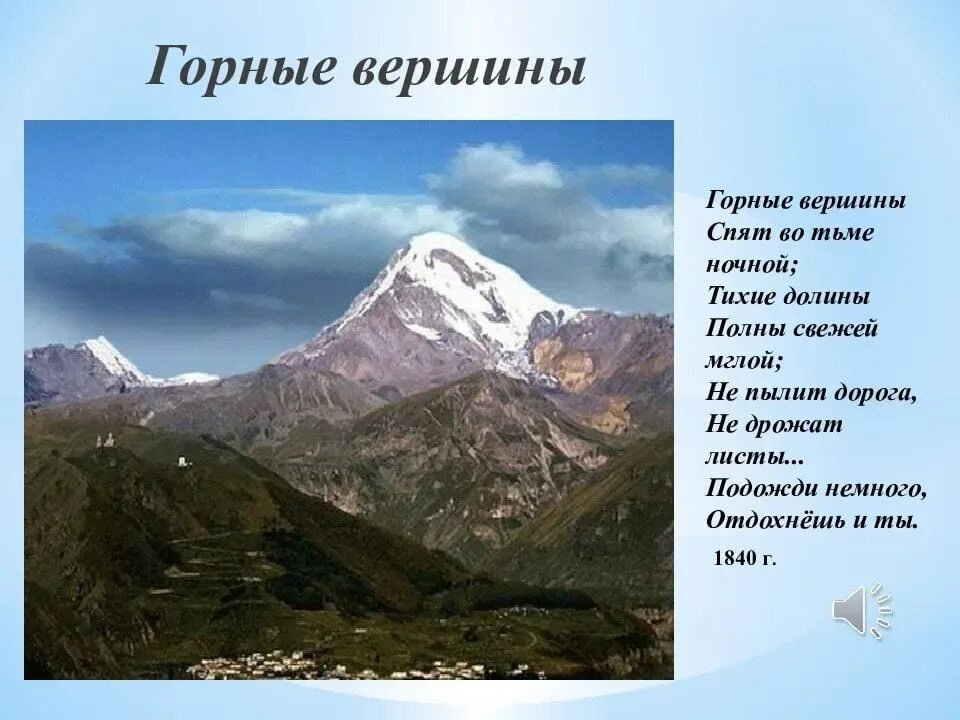 Иллюстрация к стиху Лермонтова "Горные вершины" является визуальным отражением мощи и величия природы. В ней можно увидеть горные пики, поднятые в небо, словно символизирующие стремление человека к высшим целям и непокоренному духу. Изображение передает атмосферу тишины и спокойствия, которые присущи горам, создавая ощущение гармонии и возвышенности. Каждая линия и деталь иллюстрации воссоздают сложность и красоту горных вершин, придают им реалистичность и живость. Эта иллюстрация не только воплощает художественную интерпретацию стиха Лермонтова, но и приглашает зрителя увидеть мир гор и почувствовать их могущество и величие.