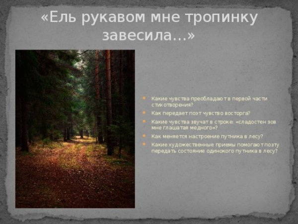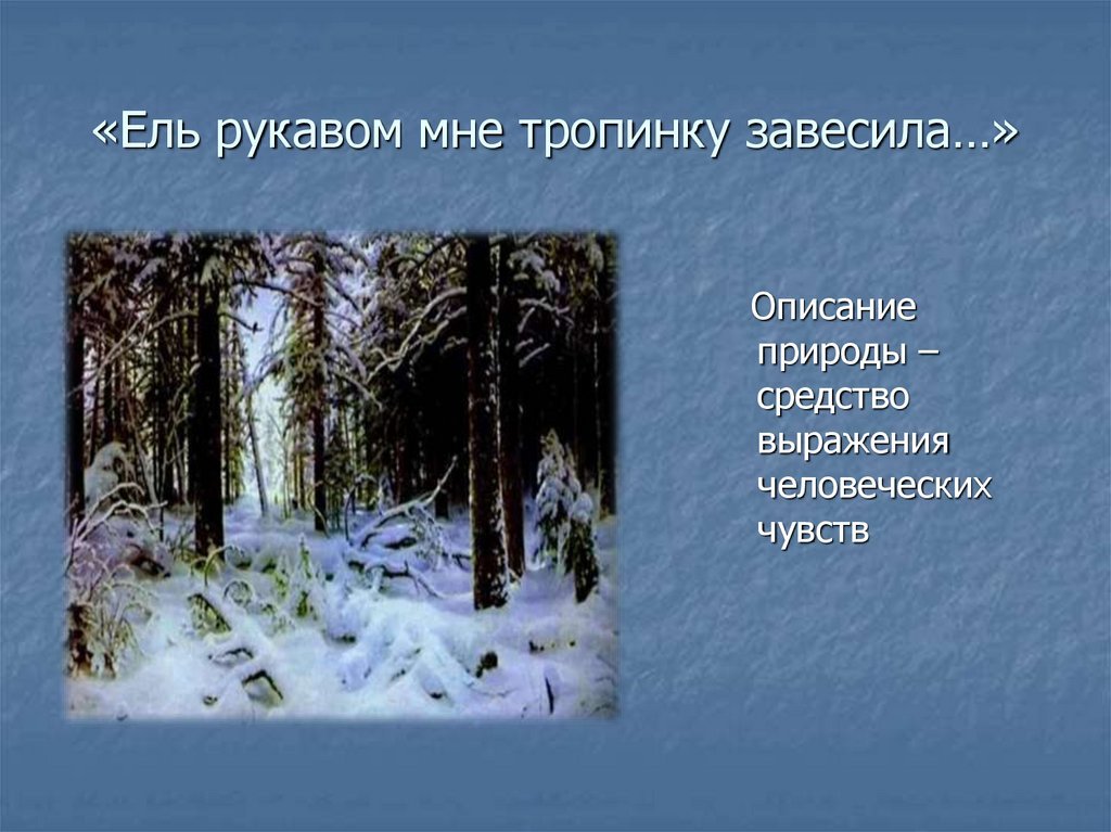 Иллюстрация к стиху "Ель рукавом мне тропинку завесила" представляет собой детальный и живописный рисунок, выполненный карандашом. На нем изображена тропинка, покрытая мягким покровом снега, которую пересекает величественная ель. Ее ветви, словно обвивающие тропинку, создают ощущение защиты и уюта. Рисунок передает атмосферу зимнего леса и проникает в сердце своей простотой и красотой. Иллюстрация настолько реалистична, что можно почувствовать хруст снега под ногами и слышать шелест еловых иголок. Она наполняет стихотворение эмоциональной глубиной и помогает читателю окунуться в его атмосферу. Этот рисунок карандашом является воплощением таланта художника и способен поразить своей простотой и одновременно глубиной.