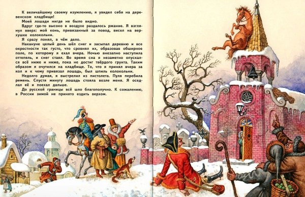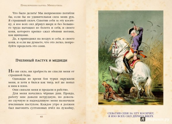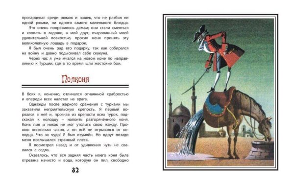 Возьмите в руки книгу "Приключения барона Мюнхгаузена" и окунитесь в захватывающий мир фантастических приключений, невероятных событий и удивительных путешествий. Уникальный иллюстрационный материал прекрасно дополняет само произведение, раскрывая перед читателем яркие образы и великолепные пейзажи. С каждой страницей открывается новый эпизод из жизни барона Мюнхгаузена, его необычные подвиги и столкновения с загадочными существами. Иллюстрации придают произведению насыщенность и визуальную привлекательность, помогая читателю лучше представить себе описываемые события и персонажей. Благодаря этому сочетанию текста и иллюстраций, чтение книги становится еще более увлекательным и запоминающимся путешествием по миру фантазии и приключений.