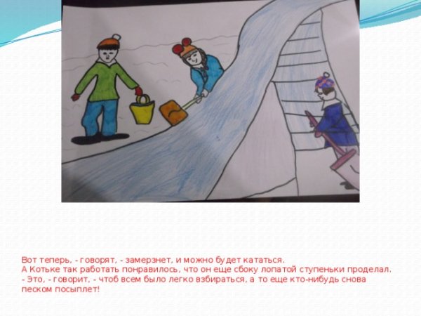Иллюстрация к произведению "Носова на горке" – это яркий и захватывающий образ, который воплощает в себе всю суть этого замечательного произведения. На иллюстрации можно увидеть горку, покрытую мягким зеленым газоном, по которой бежит маленькая девочка Носова. В ее руках она держит воздушный змей, который легко парит в воздухе под легким ветерком. Вокруг горки раскинулись яркие цветы разных оттенков, создавая впечатление непринужденности и радости. Иллюстрация передает атмосферу игры и свободы, которые испытывает главная героиня, и приглашает читателя присоединиться к ней в этом веселом приключении. Эта картина вызывает положительные эмоции и вдохновляет на активное времяпровождение на свежем воздухе.