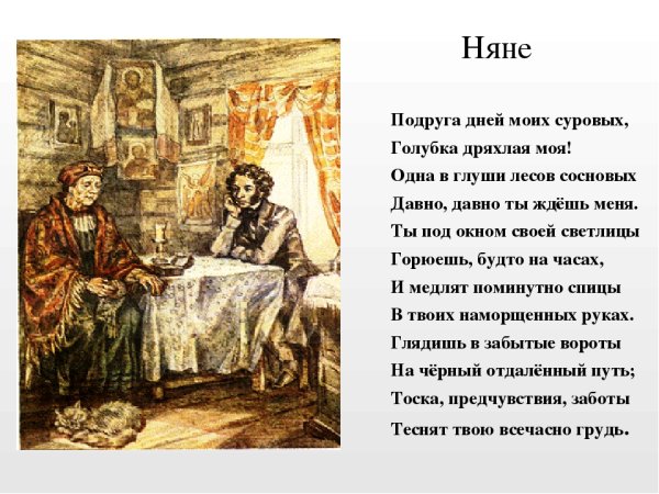 Уникальная иллюстрация, созданная специально для стихотворения Александра Пушкина "Няне", погружает нас в атмосферу нежности и заботы. Картина передает момент, когда няня укладывает спать ребенка, излучая любовь и тепло. Через мастерство художника, мы воспринимаем главные черты этой истории - заботливость и преданность, что позволяет нам почувствовать сами эти чувства. Иллюстрация к стихотворению Пушкина "Няне" станет не только прекрасным дополнением к его словам, но и красивым произведением искусства, которое может быть оценено как любителями поэзии, так и ценителями изобразительного искусства.