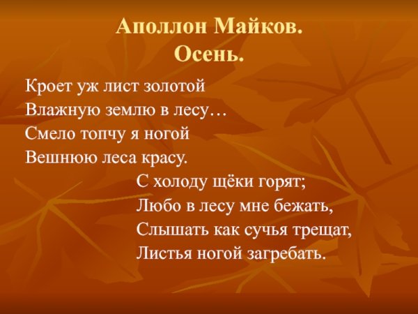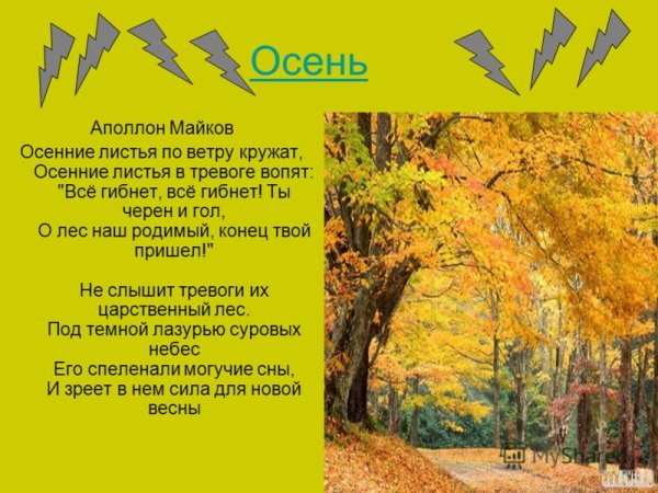 Великий русский поэт Михаил Юрьевич Лермонтов однажды написал стихотворение, описывающее красоту осеннего пейзажа. Иллюстрация к этому стиху воплощает не только его словесное описание, но и передает атмосферу и настроение осени. Осенние деревья, окрашенные в яркие оттенки желтого, оранжевого и красного цветов, создают впечатление волшебства и загадочности. Листья, плавно опадающие с веток на землю, будто танцуют под легким ветерком. На заднем плане можно увидеть пейзаж, где простирается бескрайнее поле, покрытое листьями и облаками, которые плавно проносятся над ним. Все это визуальное представление истинной красоты осени помогает нам насладиться ее магией и заставляет задуматься о времени, проходящем неотвратимо. Эта иллюстрация является прекрасным дополнением к стихотворению Лермонтова, позволяя нам визуально погрузиться в его мир и почувствовать настоящую осеннюю романтику.