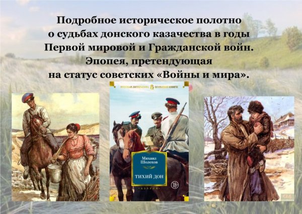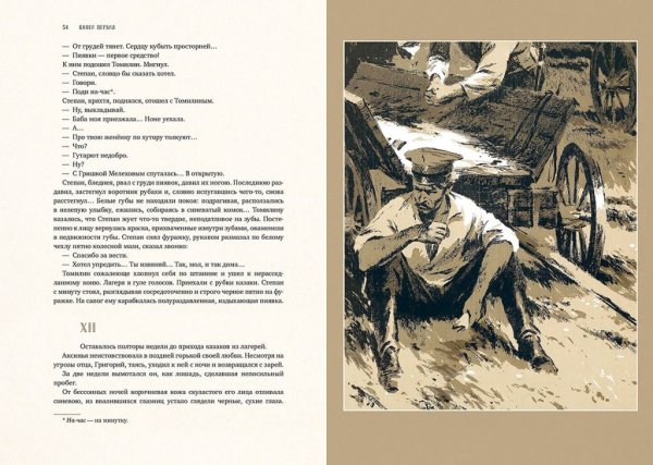 Иллюстрация к произведению "Тихий Дон" Михаила Шолохова является визуальным отображением глубокой эпической саги о жизни и судьбе казаков на Дону в период революционных событий и Гражданской войны. Эта уникальная иллюстрация передает атмосферу исторических событий, позволяя читателю глубже проникнуть в мир персонажей и пережить их эмоции. Она ярко передает основные сюжетные линии и ключевые моменты произведения, создавая образы героев и отражая их характеры и драматические ситуации. Иллюстрация к "Тихому Дону" погружает зрителя в эпоху и раскрывает богатство и многообразие человеческого опыта, которое присуще этому знаменитому произведению.