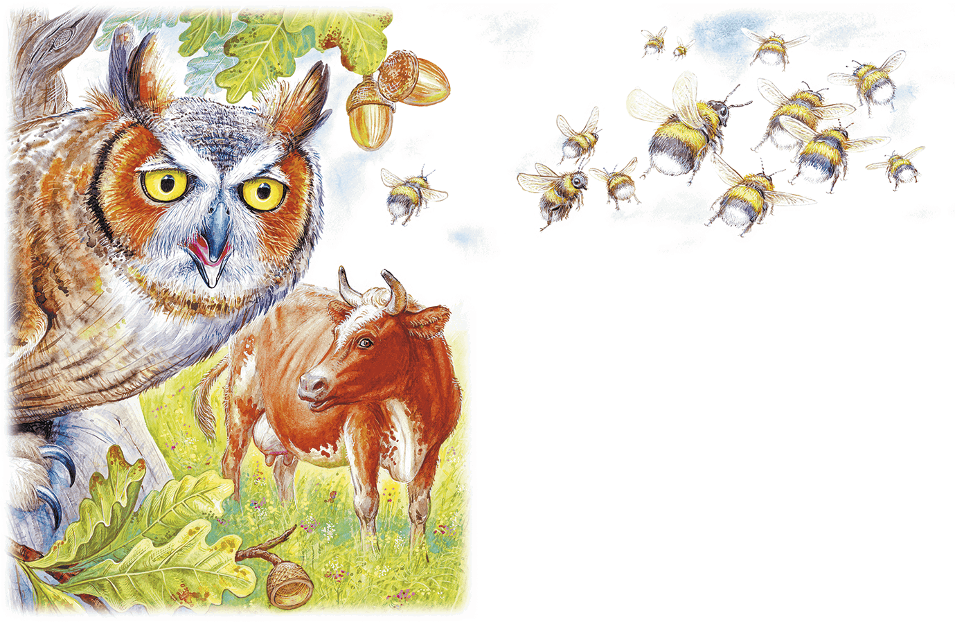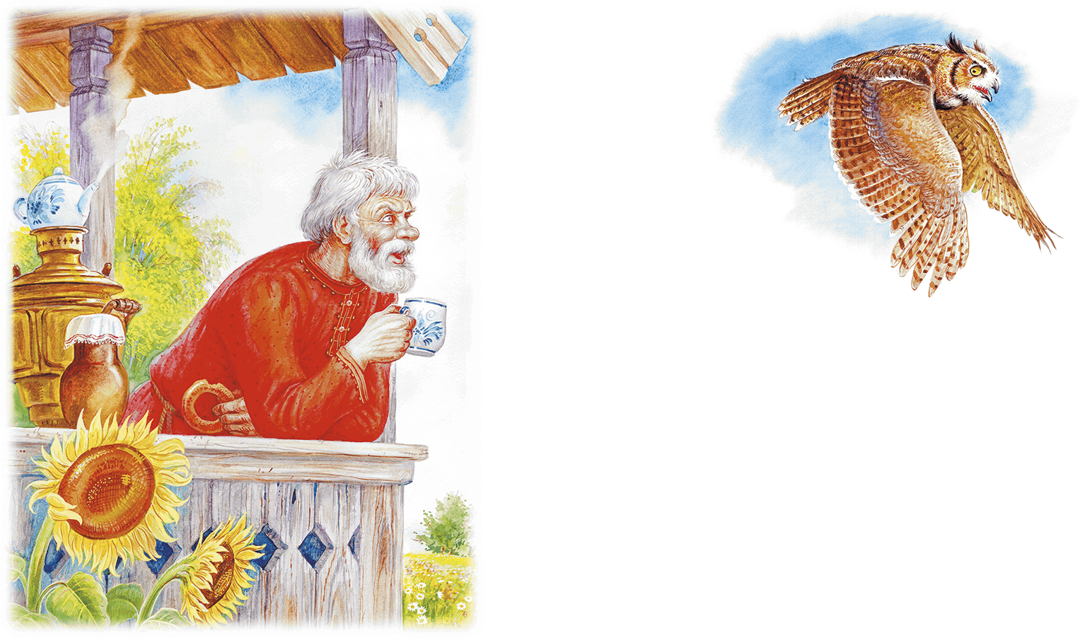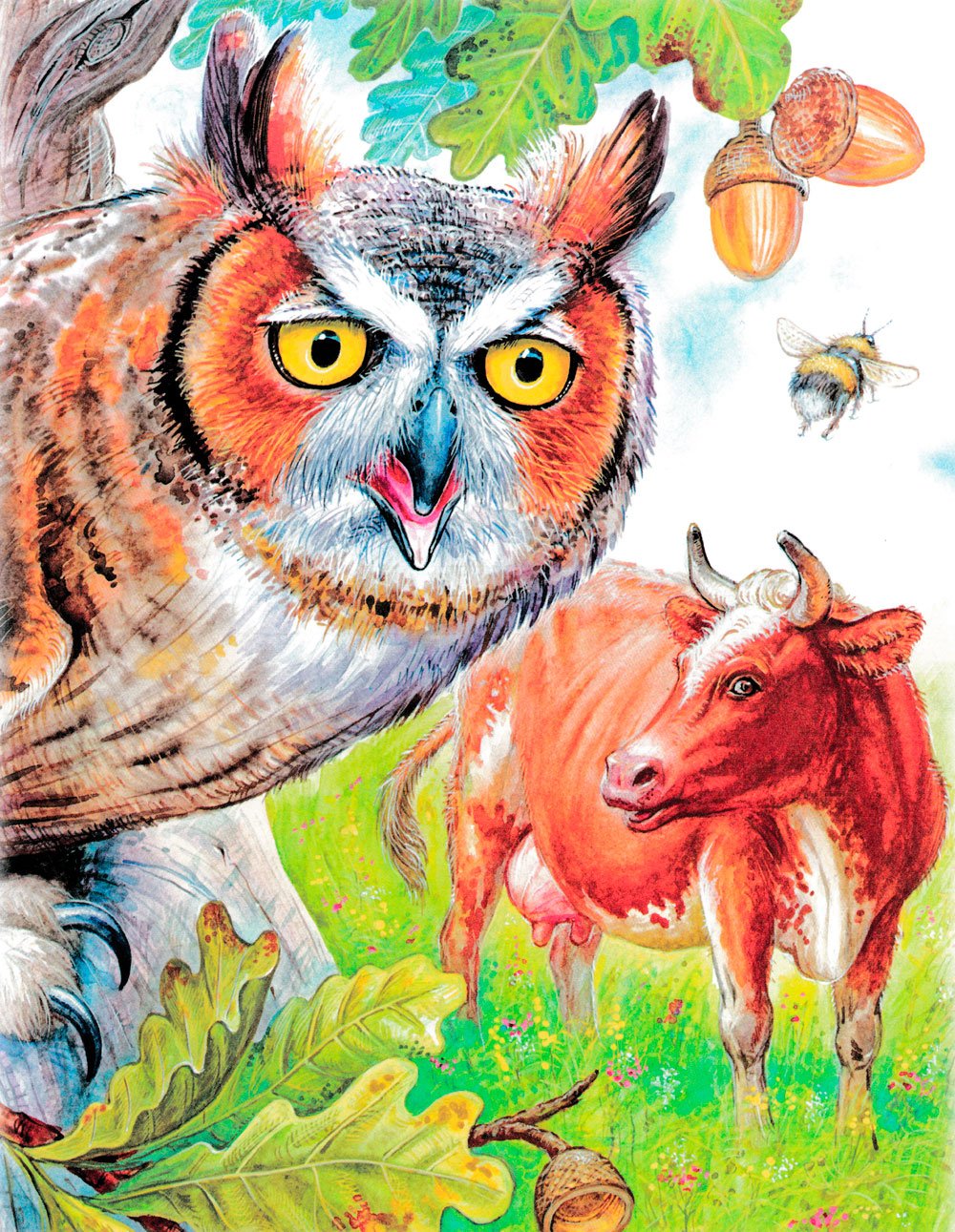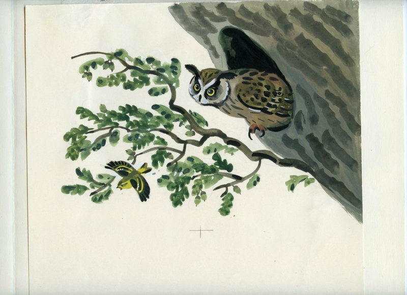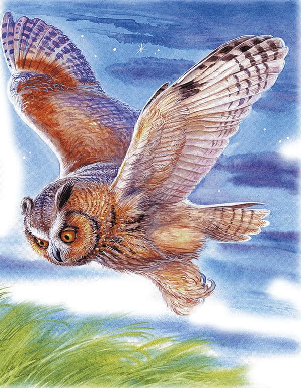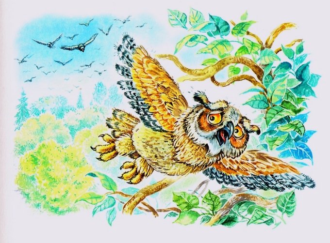 Иллюстрация к рассказу "Сова" от Виталия Бианки - это великолепное произведение искусства, которое передает атмосферу загадочности и таинственности леса. На иллюстрации изображена сова в своем естественном окружении, как будто она только что приземлилась на ветку дерева. Ее глаза сияют мудростью, а перья имеют невероятный черный цвет, который создает прекрасный контраст с фоном. Автор иллюстрации воссоздал все детали с широкой палитрой тонов, от живых зеленых оттенков листвы до мягкого освещения, падающего на пушистые перья совы. Эта иллюстрация захватывает воображение читателя, погружая его в удивительный мир природы и заклинаний леса, рассказывая о жизни и поведении этой загадочной птицы.