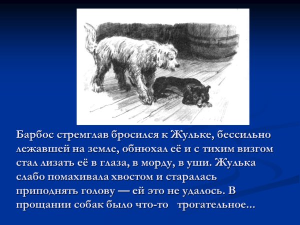 Иллюстрации к рассказу "Барбос и Жулька" Александра Куприна являются живописным отображением событий и персонажей этого удивительного произведения. Каждая иллюстрация оживляет историю, позволяя читателю глубже погрузиться в мир Барбоса и Жульки, двух беззаботных и верных друзей. От изображений радостных игр и хитрых выходок до серьезных и трогательных моментов, иллюстрации передают основные эмоции и настроение рассказа. Они придают тексту дополнительную глубину и помогают визуализировать мир Куприна, создавая неповторимую атмосферу детства и дружбы.