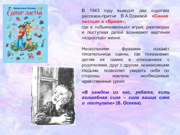 Иллюстрация к произведению "Синие листья Осеевой" воссоздает неповторимую атмосферу этого замечательного произведения. Глубокий смысл и проникновенность рассказа автора Лидии Осеевой переданы через изображение синих листьев, которые символизируют тонкую гармонию между природой и человеком. Каждая деталь и цветовое сочетание на иллюстрации аккуратно подобраны, чтобы передать эмоциональную составляющую произведения. Синие листья, окруженные приятными оттенками зелени и мягкими переходами цветов, вызывают ощущение умиротворения и вдохновления, заставляя зрителя заглянуть в глубину собственных мыслей и чувств. Иллюстрация к произведению "Синие листья Осеевой" является неотъемлемой частью этого литературного шедевра и способна увлечь своей красотой, приковывая внимание и оставляя яркий след в сердцах читателей.