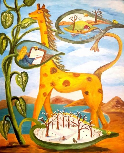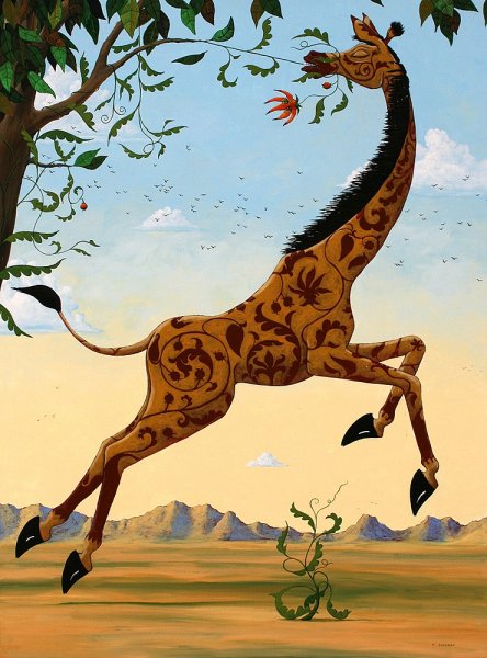 Увлекательная и яркая иллюстрация к стиху "Жираф" А.А. Гумилева позволяет окунуться в мир природы и ее загадочных обитателей. На рисунке прекрасно передана изящность и высота жирафа, его длинная шея и грациозные движения. Окружающий пейзаж восхищает своей красотой и многообразием: зеленая листва деревьев, небо с облачными лентами, а также другие животные, которые наполняют картину жизнью. Иллюстратор талантливо передает эмоции и настроение стихотворения, создавая ощущение легкости и свободы. Эта иллюстрация подарит зрителю удивительное путешествие по миру слов и воображения, раскрывая тайны природы и величие живой природы.