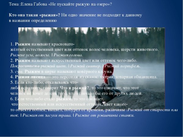 Рыжая на озере иллюстрации к рассказу - это увлекательная история, наполненная загадками и тайнами. В ней главный герой, маленький мальчик, случайно обнаруживает старую книгу с потрясающими иллюстрациями. Однако он быстро понимает, что каждая страница книги открывает портал в параллельный мир, где рыжая девочка со светящимися глазами начинает преследовать его. Чтобы избежать опасности, герою придется раскрыть тайны прошлого и разгадать загадки, которые скрываются за каждой иллюстрацией. Вместе с рыжей девочкой он отправится в увлекательное путешествие, полное приключений, волшебства и самопознания. Читатели будут напряженно следить за каждым шагом героя, испытывая на себе все его эмоции и переживания. "Рыжая на озере иллюстрации к рассказу" - это захватывающая история, которая не оставит равнодушным ни одного читателя.