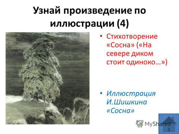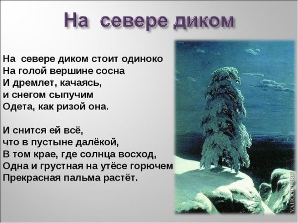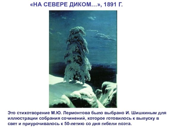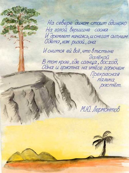 Иллюстрация к стиху Лермонтова "На севере диком" переносит нас в тайны и красоту северных ландшафтов. Это произведение поэта описывает непокорные просторы природы, где могучие скалы встречаются с бескрайними лесами и морозными реками. Иллюстрация, созданная с помощью живописных красок и чувственных мазков, воссоздает атмосферу дикой и необъятной Северной природы. Она позволяет зрителю окунуться в этот мир и насладиться его красотой, выразительностью и мощью. Каждая деталь иллюстрации передает атмосферу стихотворения и раскрывает его глубину, позволяя нам увидеть и почувствовать все многообразие северной дикой природы, которую так ярко и поэтично описал великий Лермонтов.