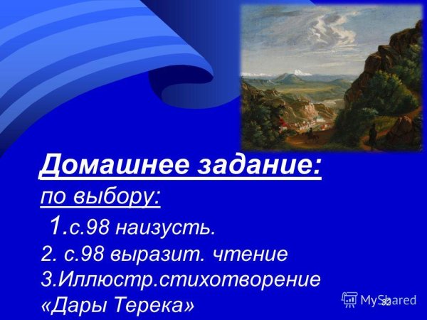 Иллюстрация к произведению Лермонтова "Дары Терека" является визуальным представлением этого поэтического произведения. Она оживляет слова и создает яркий образ в уме читателя. Подобная иллюстрация может передавать атмосферу местности, рассказывать о природных красотах Кавказа или изображать главных героев произведения. Важно, чтобы она соответствовала лермонтовскому стилю и передавала эмоциональную глубину его стихотворения. Иллюстрация к "Дарам Терека" поможет читателю в полной мере погрузиться в мир произведения и насладиться его великолепием.