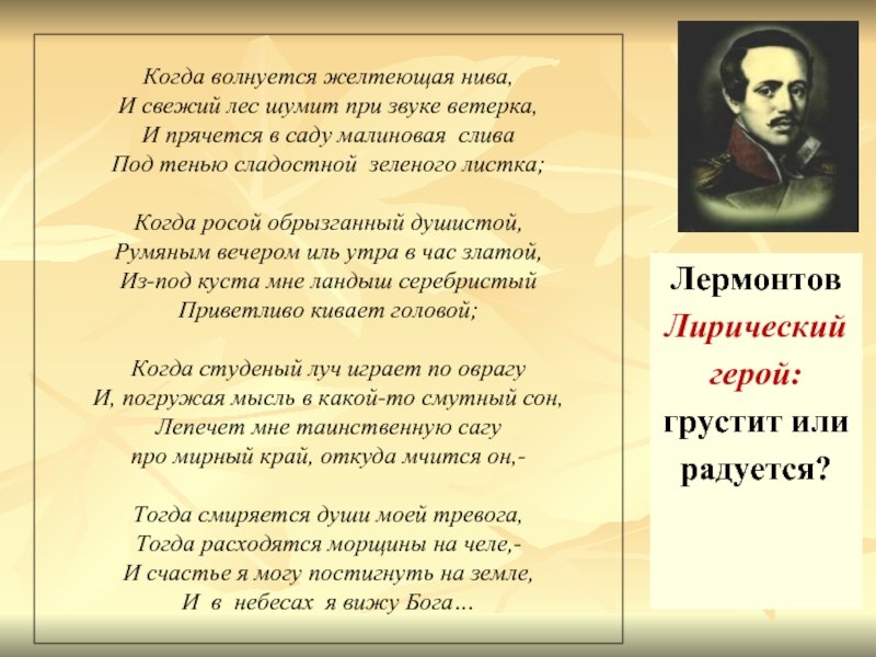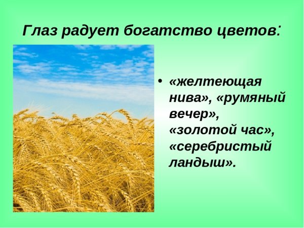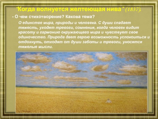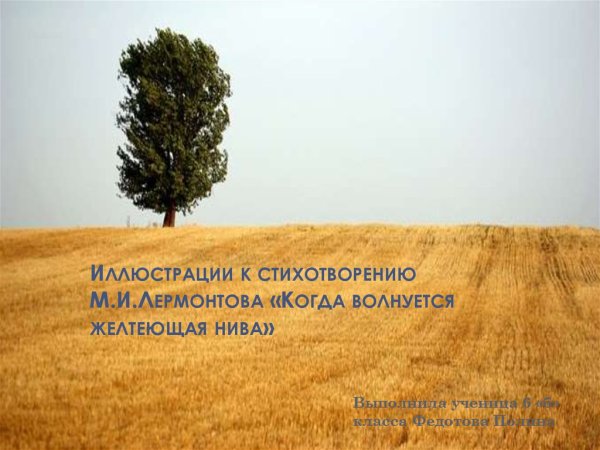 Яркая иллюстрация перед нами - желтеющая нива, которая волнуется под ласковым дуновением ветра. В этой картине природа оживает, словно таинственная сила наполняет каждое растение, каждую песчинку земли. Она готовится принять последние лучи уходящего солнца, расцветиться во всей своей красоте и медленно, но неотвратимо погрузиться в теплый желтый оттенок. Лермонтовская поэзия воплощается в этой иллюстрации, заставляя нас почувствовать нежность момента и загадочность окружающего мира.