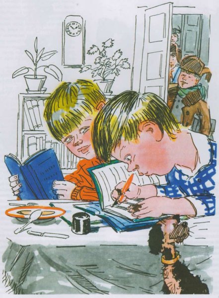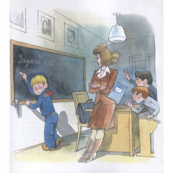 Иллюстрация к рассказу "Витя Малеев в школе и дома" простая, но выразительная. На ней изображен мальчик Витя Малеев, который стоит перед школьным зданием, сумочка в руке и улыбкой на лице. За его спиной видна школьная доска с красочными рисунками и буквами. Но когда мы переворачиваем иллюстрацию, она меняется: Витя уже дома, сидит за письменным столом, усердно делает уроки. Тут видно его концентрацию и решительность. Простота иллюстрации подчеркивает непосредственность и естественность событий, рассказывающих о повседневных занятиях и успехах Вити как ученика школы и ответственного ребенка дома.