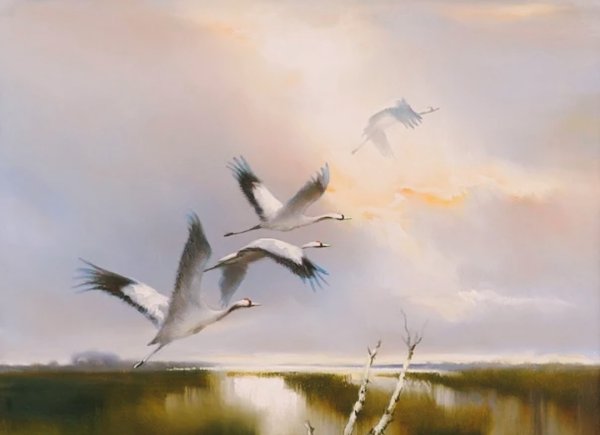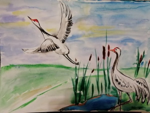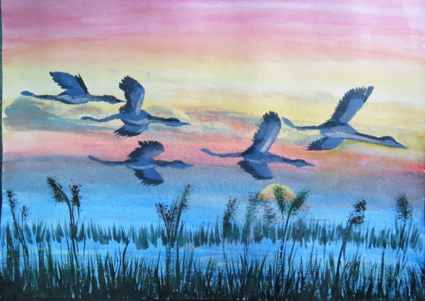 Яркая иллюстрация к стиху "Журавли" создает впечатление легкости и нежности. На ней изображены грациозные птицы, парящие в небе, с широко раскрытыми крыльями. Их длинные и изящные шеи подчеркивают их изящество и привлекательность. Красочный закат на фоне придает иллюстрации атмосферу мечтательности и романтики. Каждая линия и деталь иллюстрации передает эмоциональную глубину стихотворения, заставляя зрителя перенестись в мир журавлей и почувствовать их свободу и красоту. Это прекрасное произведение искусства является идеальным дополнением к стихотворению "Журавли".