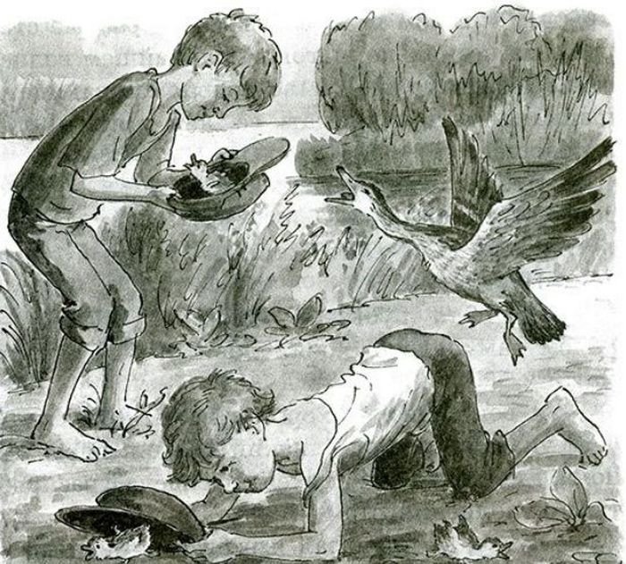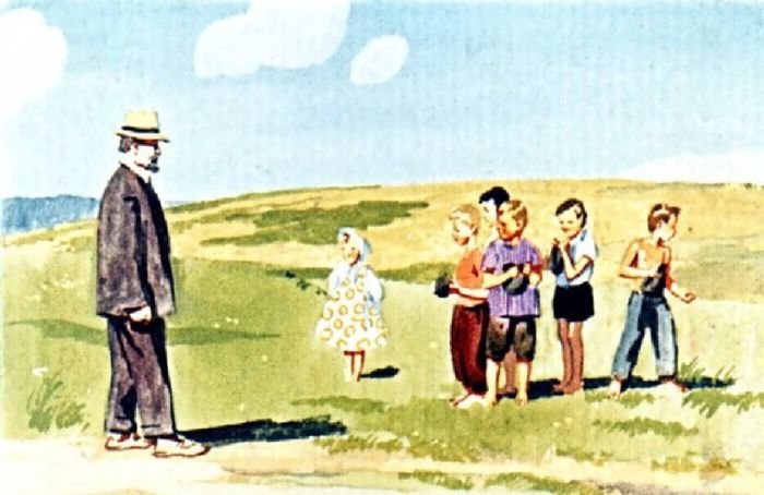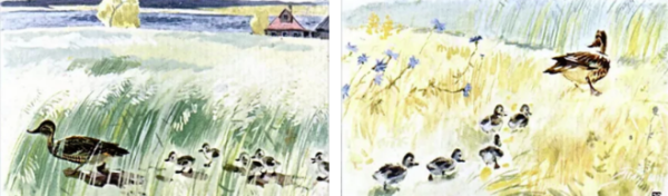 На иллюстрации к произведению Пришвина "Ребята и утята" можно увидеть яркую и веселую картину, отражающую жизнь детей и их необычных друзей - утят. На фоне прекрасного летнего пейзажа, населенного зелеными полями и цветущими цветами, дети играют с утятами, что создает атмосферу радости и беззаботности. Иллюстрация передает важные темы произведения, такие как дружба, забота о животных и природа, а также вызывает у читателя желание окунуться в этот удивительный мир, полный игр и приключений.