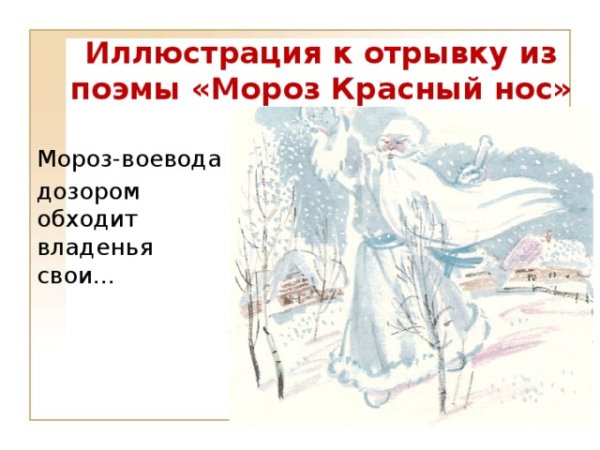 Иллюстрация к стиху "Мороз-воевода" - это визуальное воплощение всей силы и мощи зимнего холода. Она передает атмосферу непреклонной власти Мороза, который является не только покровителем зимы, но и непобедимым воином. На иллюстрации можно увидеть изображение Мороза в военной форме, обрамленного ледяными осколками и окруженного холодным воздухом. Его глаза сияют ледовым блеском, а руки призывают стужу и морозные бури. Весь образ наполнен энергией, которая заставляет дрожать от холода и одновременно поражает своей величественностью. Иллюстрация к стиху "Мороз-воевода" вызывает трепет и восхищение перед могуществом природных стихий, а также передает глубокий символический смысл этого произведения.