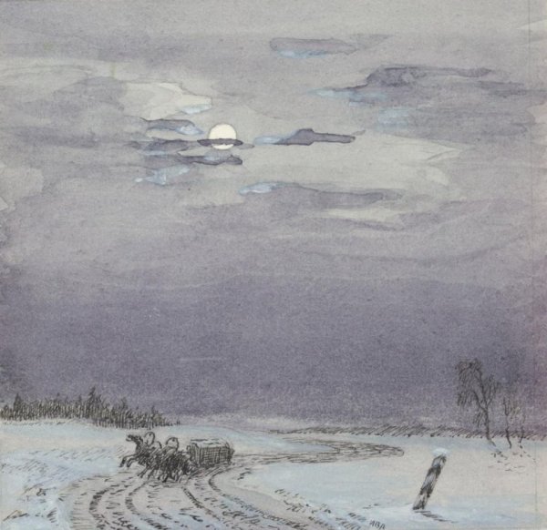 На иллюстрации к стихотворению Пушкина "Зимняя дорога" изображен заснеженный лесной пейзаж, полный таинственного очарования. Вдали проглядываются высокие сосны, украшенные шапками из свежего снега. Дорога, намеченная на фоне белого покрова, ведет куда-то вглубь леса, вызывая интерес и желание отправиться в путешествие. Эта зимняя дорога наполнена спокойствием и загадочностью, приглашая читателя в мир природы и рассказывая о неизведанных приключениях, которые могут ожидать нас за каждым поворотом.