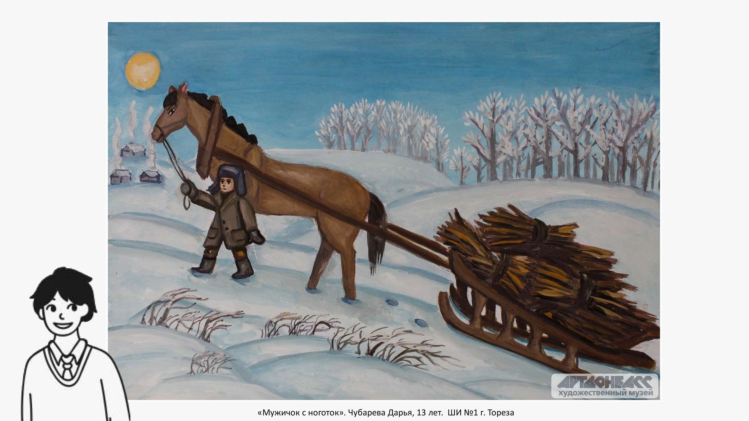 Иллюстрация к произведению Некрасова "Мужичок с ноготком" является ярким и проникновенным воплощением образа простого русского мужика с его привычками и особенностями. На иллюстрации можно увидеть героя, у которого выраженная физическая сила и рослый статура, что символизирует его трудолюбие и стойкость. Особое внимание обращает на себя деталь в виде ноготка, который является неотъемлемой частью образа мужичка и отражает его скромность и простоту. Иллюстратор умело передает черты лица и выражение глаз героя, что позволяет наблюдателю почувствовать его внутренний мир и характер. Все это в целом создает атмосферу родной русской деревни и позволяет зрителю погрузиться в атмосферу произведения Некрасова, раскрывая перед ним богатство и сложность русской души.