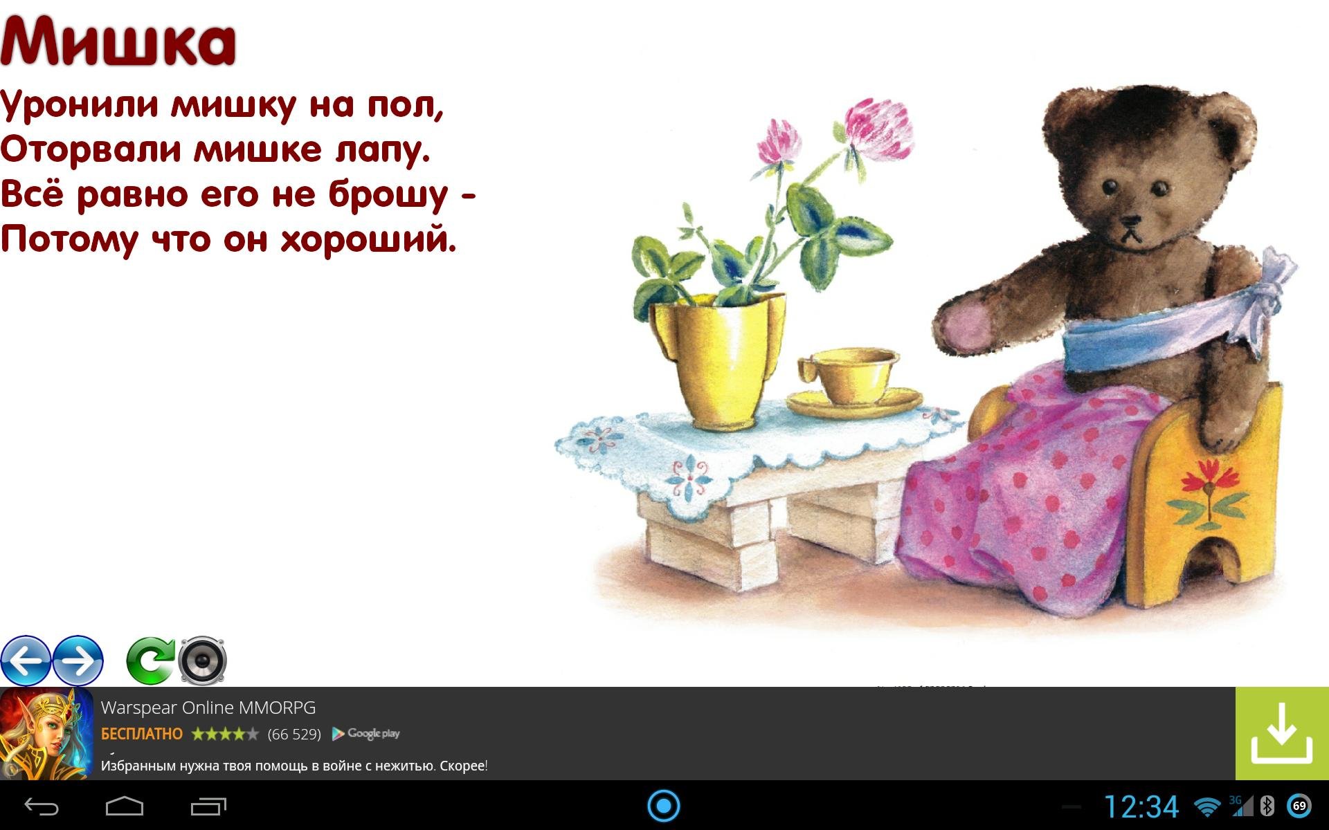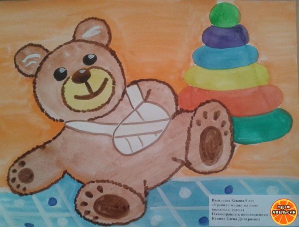 Яркая иллюстрация к стиху "Уронили мишку на пол" захватывает взгляд своей яркостью и живостью. На картине можно увидеть маленькую мишку, которую кто-то случайно уронил на пол. Ее пушистая шерсть и милые черты лица делают ее невероятно милой и привлекательной. Вокруг мишки видны разбросанные игрушки и предметы, которые слегка повредились при падении. Яркие цвета и детализация каждой детали создают ощущение, будто событие происходит прямо перед глазами зрителя. Эта иллюстрация сможет заинтересовать как детей, так и взрослых своими яркими красками и непередаваемым чувством юмора.
