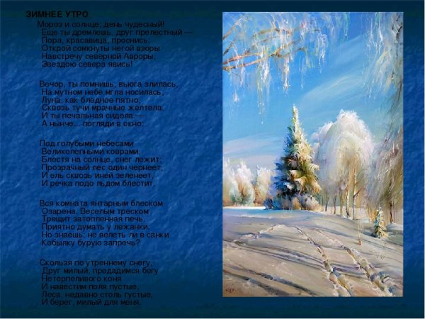 Великолепная иллюстрация к стихотворению "Мороз и солнце" раскрывает перед нами яркий образ дня, полного чудес. На картине мы видим морозный зимний пейзаж, где белоснежные сугробы искрятся под лучами солнца. Оно проникает сквозь сосновые ветви, создавая игру света и тени на снегу. Вдоль тропы, ведущей в далекий горизонт, пробегают широкие ленты темного силуэта, оставляемые прохожими. В этой иллюстрации оттеночная гамма наполняет нас ощущением холода и одновременно теплом, вызывая неповторимое восприятие зимнего дня, полного загадочных и волшебных моментов. Такая иллюстрация придаст особую глубину и эмоциональность знакомому нам стихотворению.