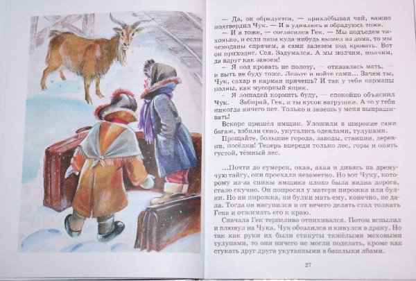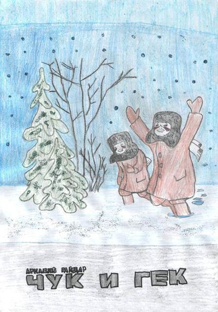 Иллюстрация к произведению "Чук и Гек" Гайдара - это яркое и увлекательное воплощение приключений двух дружных мальчишек. На рисунке мы видим Чука и Гека, счастливых и энергичных ребят, которые несмотря на свою маленькую возраст, полны решимости и отваги. Иллюстратор передал атмосферу приключений и радости, которая окутывает каждого читателя этой замечательной книги. Они стоят рядом, готовы покорить новые вершины детского воображения и привести нас в мир невероятных фантазий и неожиданных поворотов сюжета. Визуально привлекательная иллюстрация позволяет окунуться в мир Чука и Гека, и также вызывает желание прочитать их историю и узнать, что ждет нашу неутомимую детскую пару дальше.