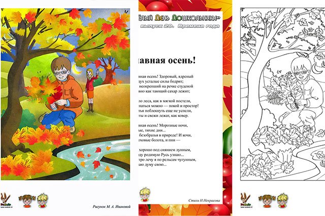 Славная осень - волшебное время года, когда природа преображается в самые яркие и насыщенные цвета. Листья деревьев облачаются в золотистые, оранжевые и красные оттенки, создавая бесконечно красивую палитру. Осенний ветер ласкает щеки, а теплые лучи солнца проникают сквозь густую листву, создавая игры света и тени. Иллюстрация к стиху "славная осень" может отобразить всю эту прекрасную атмосферу - золотые поля, прогулки по лесу, коврик из листьев под ногами, чашку горячего чая, которую можно выпить, наслаждаясь видом роскошного осеннего пейзажа. Сочетание ярких и теплых цветов, мягких и плавных линий поможет передать весь шарм и умиротворение этого времени года. Каждая деталь и каждый цвет будут иметь значение и отражать великолепие осени во всей его славе.