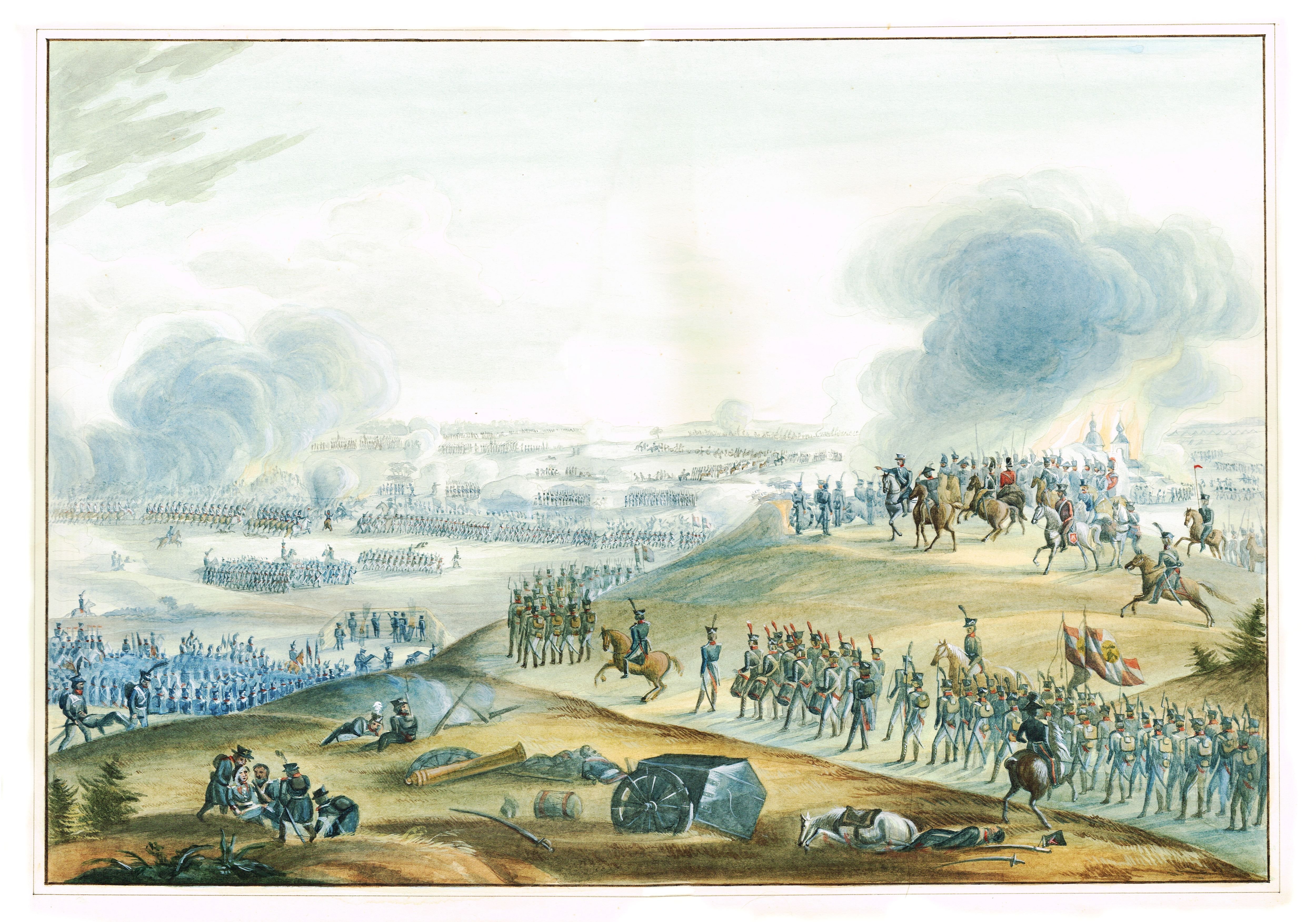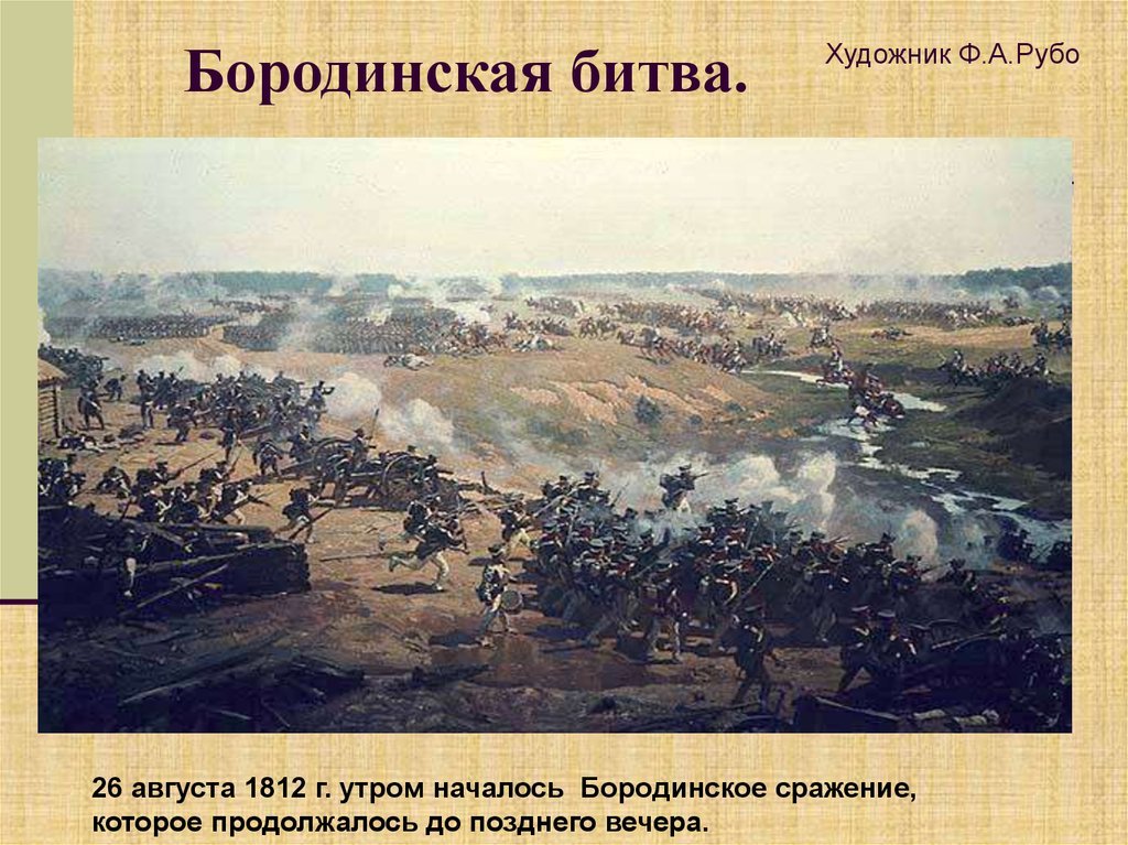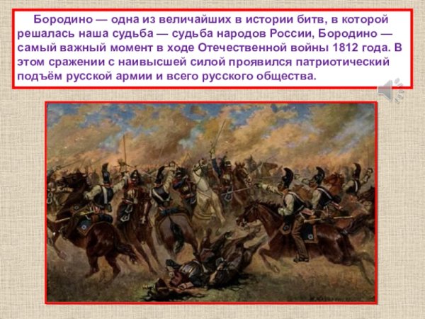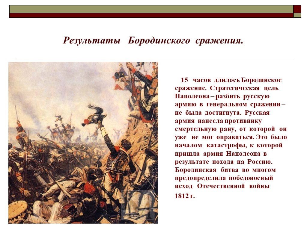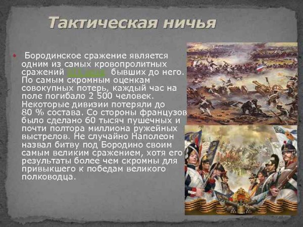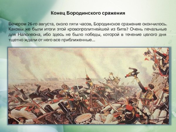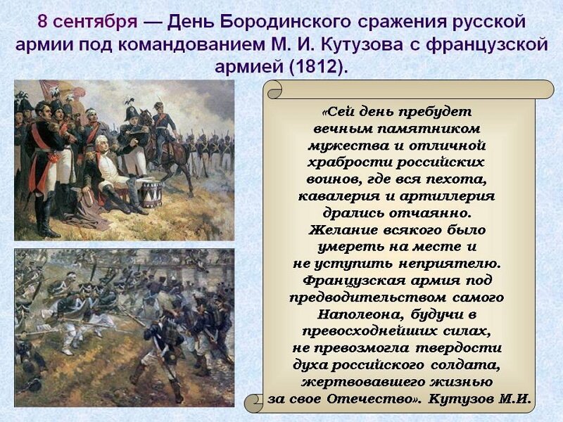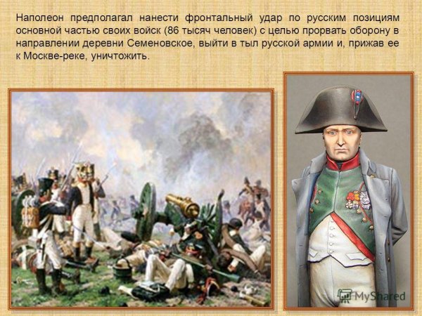 Бородинская битва - одно из самых значимых сражений в истории России, которое произошло 7 сентября 1812 года. Это столкновение между российской армией под командованием Михаила Кутузова и грандиозной французской армией Наполеона Бонапарта оставило непередаваемый след в сердцах людей и на страницах истории. Иллюстрация этого события наглядно передает масштабность и напряженность битвы: линии солдат, оснащенных мушкетами и саблями, уверенно противостоят друг другу, колесницы и кони скакунов создают атмосферу динамики и движения. Весь этот образ характеризуется силой, мужеством и героизмом, которые олицетворяли и русские, и французы во время этой исторической битвы.