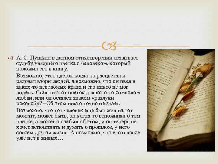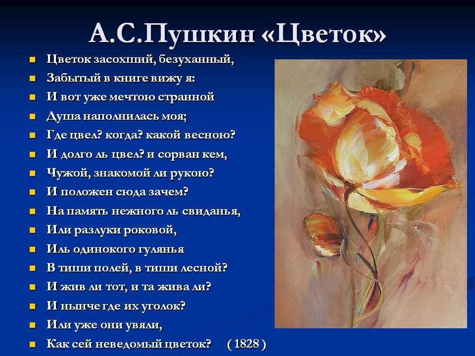 Моя иллюстрация к стихотворению Александра Пушкина "Цветок" воплощает визуальное восприятие этого произведения. Я старался передать нежность и красоту, которые присущи этому стихотворению. На моем изображении центральным элементом является цветок, символизирующий любовь и природную красоту. Цветок изображен в полном расцвете, с яркими и насыщенными оттенками, чтобы подчеркнуть его живость и привлекательность. В окружении цветка можно увидеть другие растения и цветы, которые создают атмосферу обильного и разнообразного природного роста. Общая композиция иллюстрации отражает гармонию и баланс между человеком и природой, что является одной из ключевых тем в стихотворении. Вся эта картина призвана подчеркнуть великолепие и красоту представленного Пушкиным цветка и наполнить ее эмоциональным подтекстом, который так присущ его поэзии.