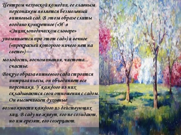 Иллюстрация к рассказу "Вишневый сад" является визуальным отражением ключевых моментов и символических элементов этого произведения. Она создает атмосферу умиротворения и ностальгии, передавая нежность и красоту местности, на которой развивается сюжет. Возможно, на иллюстрации изображены расцветающие вишневые деревья, символизирующие прекрасное прошлое и быстротечность времени. Или она может показывать главных героев среди пышной природы, выражая их эмоциональное состояние и взаимоотношения. В любом случае, иллюстрация к рассказу "Вишневый сад" помогает читателю воплотить в своем воображении мир и переживания героев этой истории.