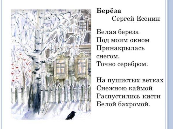 Иллюстрации к детским стихам Есенина – это волшебное сочетание поэзии и изобразительного искусства, которое позволяет маленьким читателям окунуться в удивительный мир слов и образов. Каждая иллюстрация яркая и насыщенная, она помогает ребенку визуализировать сказочные сюжеты и персонажей, описанные Сергеем Есениным. Здесь можно увидеть изображения лесных зверей, птиц, цветов, реки, неба – все то, что так часто присутствует в его стихах. Иллюстрации к детским стихам Есенина созданы с любовью и заботой, чтобы дети могли легко и непринужденно воспринять поэтический мир этого великого русского поэта и познакомиться с его произведениями еще на самом раннем возрасте.