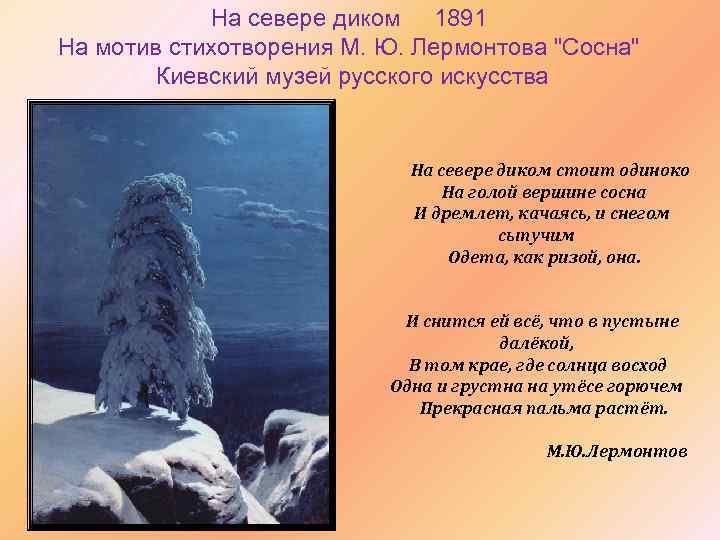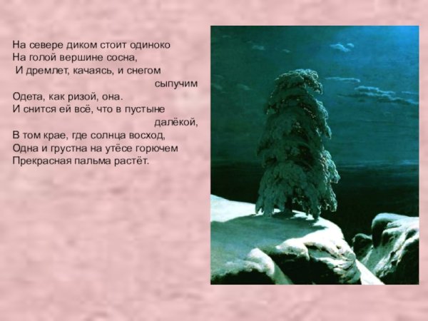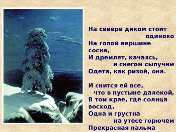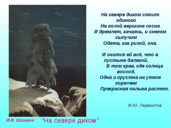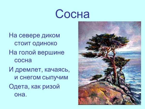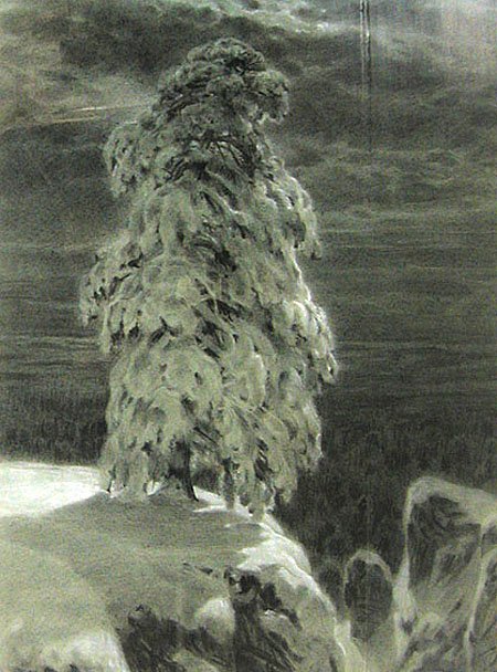 Иллюстрация к стиху Лермонтова "Сосна" воплощает в себе красоту и мощь природы. На рисунке изображена величественная сосна, которая стоит одиноко на фоне горного пейзажа. Ее ветви раскинуты в разные стороны, словно она хочет обнять небо. Листья сосны изображены таким образом, что кажется, будто они шепчут тайны истории этого места. Вокруг дерева виднеются слабые следы человеческой деятельности, что подчеркивает его вечность и нерушимость. Иллюстрация передает глубокий смысл стихотворения Лермонтова, описывающего сосну как символ верности и стойкости природы перед временем и изменениями.