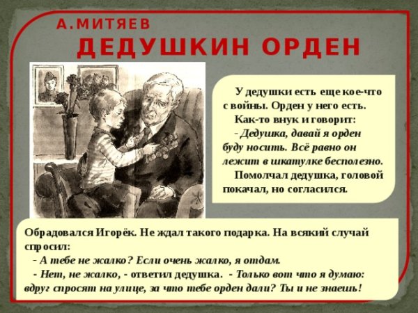 Иллюстрация к рассказу "Дедушкин характер" открывает перед нами увлекательный мир взаимоотношений между поколениями. На картине видны теплые осенние краски, которые отражают спокойствие и умиротворение домашнего очага. В центре внимания находится дедушка, изображенный с любовью и уважением. Его выразительное лицо говорит о жизненном опыте и мудрости, а глаза улыбаются, словно передают радость общения со своими близкими. Характер дедушки отражается в его одежде и манерах: он представлен в старомодном костюме, что символизирует его традиции и консервативные взгляды, однако в то же время он приветлив и готов поделиться своей мудростью с молодым поколением. Иллюстрация к рассказу "Дедушкин характер" позволяет зрителю окунуться в атмосферу семейной гармонии и важности сбережения традиций, а также понять ценность мудрости и опыта старшего поколения.