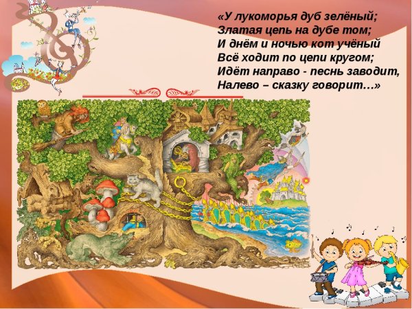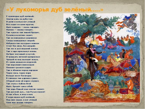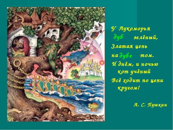 Иллюстрации к стиху "У лукоморья дуб" привносят визуальное воплощение магического и загадочного мира, созданного Александром Пушкиным. Древо - дуб - символ силы и устойчивости, воплощает в себе какую-то таинственную энергию, которая проникает в сердца читателей. Иллюстрации могут отображать сам дуб во всей своей мощи и величественности, окруженный загадочной атмосферой леса, или же могут подчеркнуть его связь с историей, например, изображая его как старинное дерево с высеченными на нем знаками и символами. Они помогают визуализировать этот необычный мир и передать его особое настроение, погружая читателя в мир фантазии и волшебства, который описывается в стихотворении.