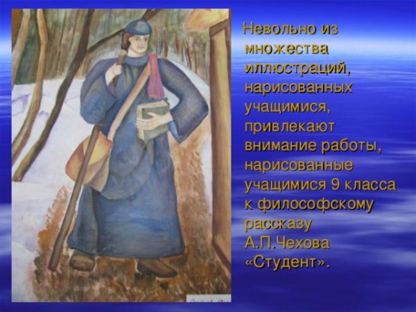Иллюстрации к рассказу "Студент" Антона Чехова создают визуальное дополнение к его литературному произведению, позволяя читателю глубже погрузиться в атмосферу и события рассказа. Используя различные художественные техники и стили, иллюстраторы передают настроение и эмоции персонажей, а также образуют образы мест и событий, описанных автором. От выбора цветовой палитры до детализации изображений - каждая иллюстрация тщательно задумывается и создается с целью запечатлеть ключевые моменты и идеи рассказа, привнося свежий взгляд и интерпретацию к произведению Чехова.