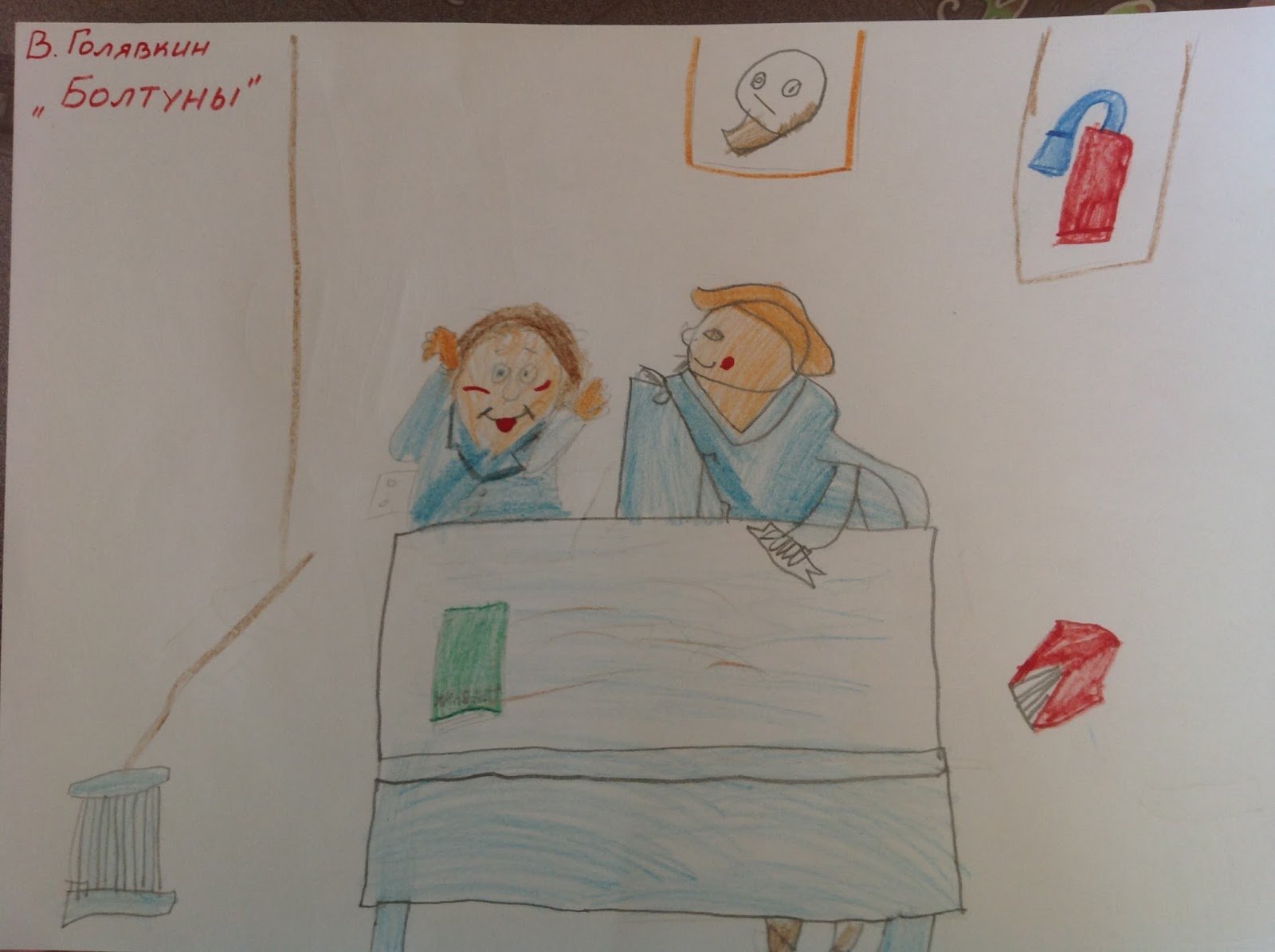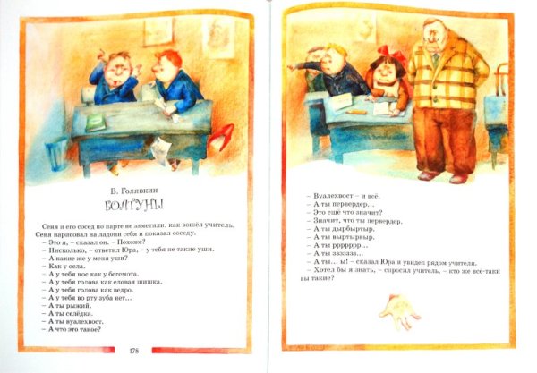 Иллюстрация к рассказу "Болтуны Голявкин" ярко иллюстрирует забавные приключения главного героя, по имени Голявкин. В центре внимания находятся его непредсказуемые выходки и склонность к болтовне, которая часто приводит его в смешные и неожиданные ситуации. Иллюстрация отображает Голявкина в полном расцвете своей комичности, с широкой улыбкой и живыми глазами, что передает его жизнерадостный и задорный характер. Она использует яркие цвета и динамичные линии, чтобы подчеркнуть энергичность персонажа и создать атмосферу юмора и игры. Иллюстрация к рассказу "Болтуны Голявкин" привлекает внимание читателей и помогает им представить веселые и запоминающиеся моменты из этого захватывающего произведения.