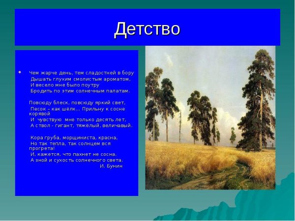 Иллюстрация к стиху "Детство" Ивана Алексеевича Бунина воплощает в себе нежность и трепетность этой эмоциональной поэтической работы. Картина воссоздает атмосферу детства, где каждая деталь наполнена яркими и красочными оттенками. Она позволяет окунуться в мир игр и радости, где самые простые моменты становятся неповторимыми и значимыми. Визуальные образы на картине передают непосредственность и бесконечную счастливую беззаботность детских лет, позволяя зрителю ощутить теплое сердце и чувственность стиха. Эта иллюстрация приглашает каждого зрителя возвращаться к своему собственному детству, переживая и вновь осознавая его ценность и уникальность.