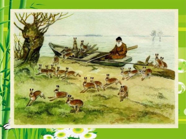 В увлекательной иллюстрации к необычному стихотворению "Дедушка Мазай и зайцы" смешиваются фантазия и реальность. На ярком и красочном изображении мы видим добродушного дедушку Мазая, окруженного игривыми зайцами, которые весело прыгают вокруг него. Их мягкие и пушистые тела выделяются на фоне зеленого луга, а их хитрые глаза и ушки добавляют им особый шарм. Дедушка Мазай держит в руках большую корзину со свежими овощами, которые, кажется, зайцы просто обожают. Они весело подпрыгивают и делают воздушные сальто, создавая атмосферу радости и веселья. Эта иллюстрация полна жизни и энергии, заставляя нас поверить в волшебный мир, где дедушка Мазай и зайцы живут в гармонии и радости.