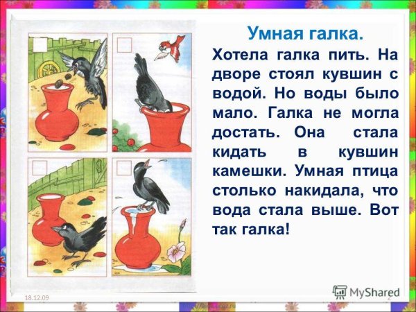 Завораживающая иллюстрация, оживляющая страницы рассказа "Галка хочет пить", переносит читателей в мир природы и эмоций. Ловко переданная натура галки с ее изящным оперением и живыми глазами захватывает взгляды и вызывает неподдельные чувства любопытства и волнения. Визуальная интерпретация ключевого момента, когда галка испытывает жажду, подчеркивается яркими цветами и детализацией, позволяя окунуться в саму сущность этой истории. Реалистичность иллюстрации, сочетающаяся с тонкими красочными штрихами, придает рассказу свежесть и запоминающуюся визуальную атмосферу, которую будет сложно забыть.