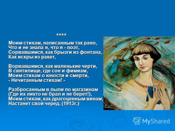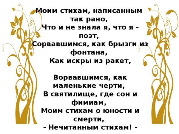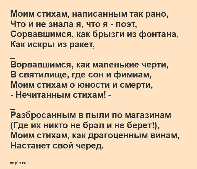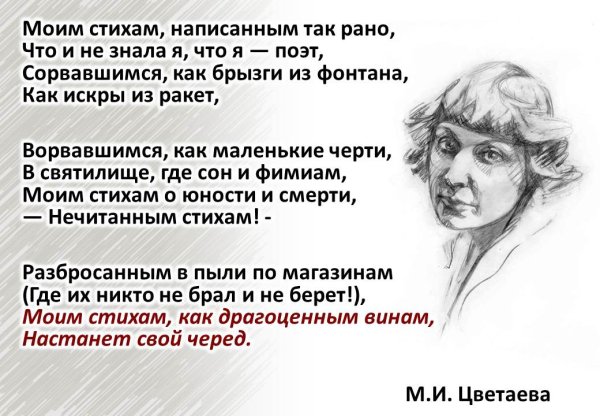 Мои стихи написаны с таким живым искренним вдохновением, что они словно оживают перед глазами читателя. Они яркие, красочные, как цветаева иллюстрации, которые украшают каждую страницу моего творчества. Каждая строка пронизана эмоциями и глубоким смыслом, переносящим слушателя в мир моих мыслей и чувств. Мои стихи – это картины, на которых отражены самые разнообразные эпизоды жизни, философские размышления и яркие образы. Они несут в себе эстетическое наслаждение и художественное восприятие, подобно прекрасным иллюстрациям, которые добавляют глубину и выразительность тексту. Мои стихи вызывают эмоции, берут за душу и оставляют незабываемый след в сердцах тех, кто читает их. Они подарят вам удовольствие и взлет в мир воображения, точно также, как цветаева иллюстрации украшают и раскрашивают страницы книг.