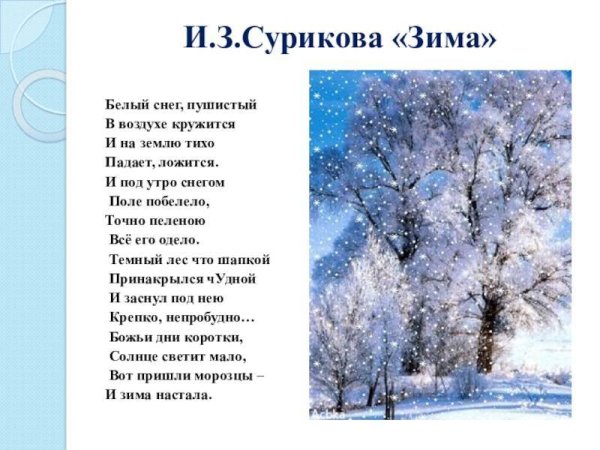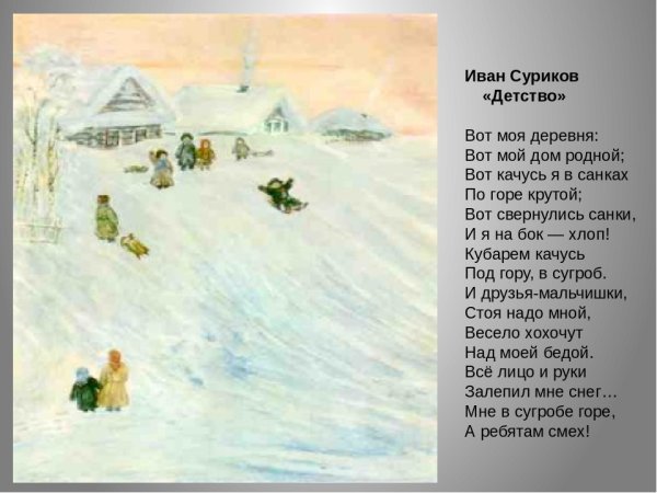 Иллюстрация к стихотворению "Зима" Ивана Захаровича Сурикова - это великолепный художественный образ, который прекрасно передает атмосферу и настроение зимнего пейзажа, описанного в стихотворении. Каждая деталь и мазок на картине аккуратно проработаны, чтобы вызвать у зрителя ощущение холода, тишины и умиротворения, которое так часто сопровождает зимний период. Иллюстрация придаёт дополнительную глубину и выразительность тексту, позволяя нам визуально вжиться в его содержание и почувствовать всю его силу и красоту. Это произведение искусства позволяет полностью погрузиться в атмосферу зимы и насладиться ее уникальной прелести.