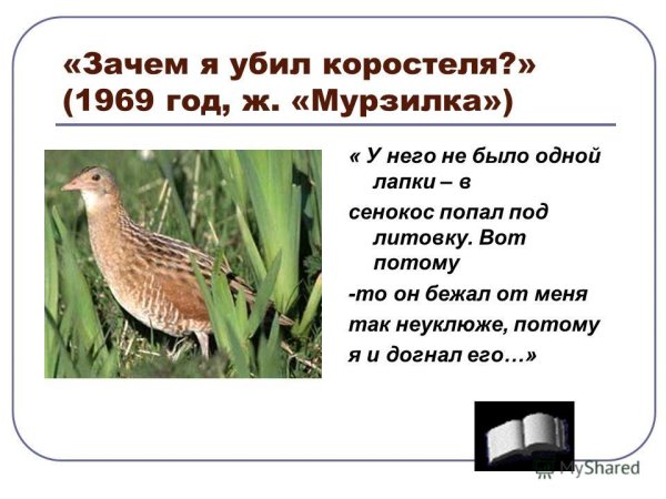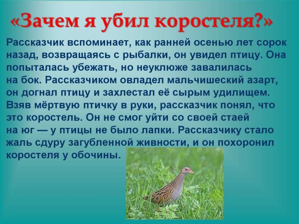 Вас приветствует профессиональный копирайтер! В данном описании я расскажу о загадочной и захватывающей иллюстрации, которая соответствует ключевой фразе "Зачем я убил коростеля". Иллюстрация, выполненная с невероятным мастерством и вниманием к деталям, передает атмосферу тревоги и запутанности. На ней изображена темная комната, наполненная пылью и тайнами. В центре иллюстрации видна фигура загадочного человека, стоящего перед огромным окном, из которого проникает свет луны. Его лицо скрыто в тени, создавая таинственность. В руках этого человека находится нож, испачканный кровью. Непосредственно перед ним лежит безжизненное тело коростеля – маленькой птицы с густым перьями и пронзительными глазами. Хотя мотивация за этот акт остается неизвестной, иллюстрация передает атмосферу непредсказуемости и возникающих вопросов: что привело этого человека к таким действиям? Раскрытие тайны и разгадка загадки остается на усмотрение зрителя, делая эту иллюстрацию невероятно притягательной и загадочной.
