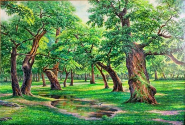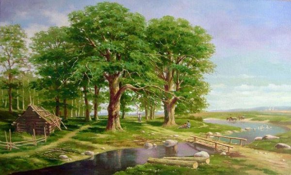 Иллюстрация к рассказу "Городок у дубовой рощи" воплощает магию и очарование живого мира природы. На картине мы видим маленький уютный городок, расположенный рядом с прекрасными дубами. Весь пейзаж окутан мистической атмосферой, создавая ощущение таинственности и загадочности. Дубы, своими длинными ветвями и густыми листьями, создают тень, за которой прячутся разнообразные персонажи этого городка. Каждый домик и уличка заполнены маленькими деталями, которые придают особую индивидуальность каждому месту. Эта иллюстрация переносит нас в волшебный мир фантазии, где живут забавные существа и происходят невероятные приключения.