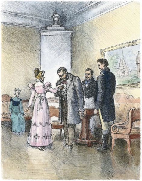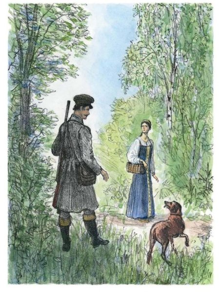 Иллюстрация к повести "Барышня-крестьянка" ярко передает атмосферу русской деревни и романтическую историю главной героини. На иллюстрации можно увидеть простую, но красивую крестьянку в народной одежде, окруженную живописным ландшафтом - зелеными полями, цветущими полевыми цветами и старинными деревенскими постройками. Изображение передает ее натуральную красоту и изящество, а также отражает ее силу и независимость духа. Все это помогает передать атмосферу русского сельского быта и приглашает читателя окунуться в мир этой захватывающей истории.