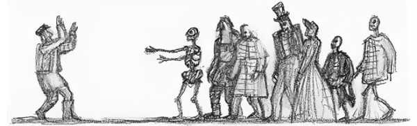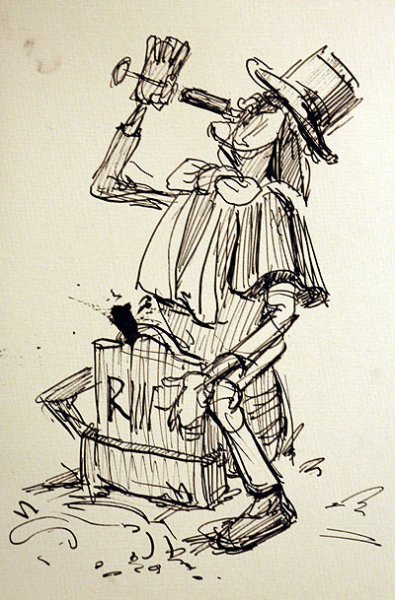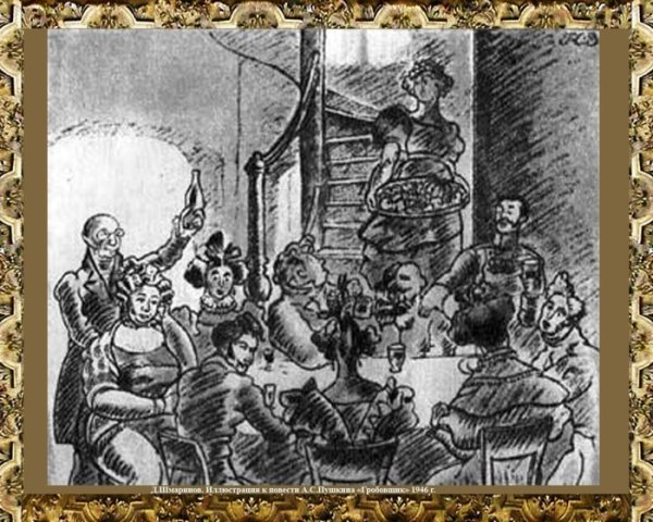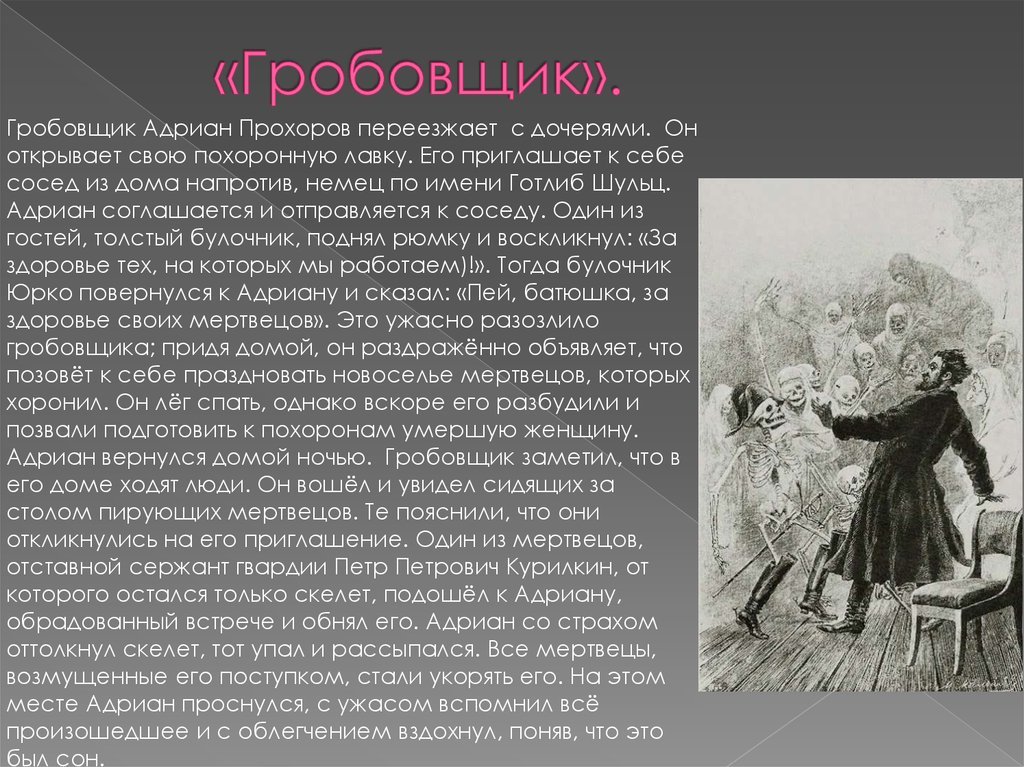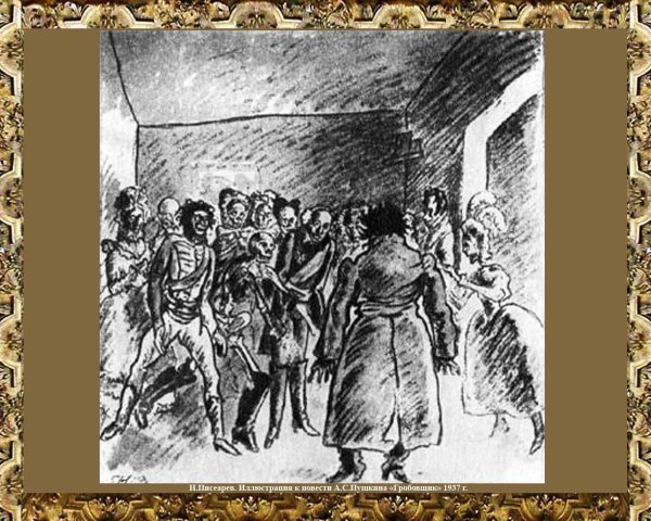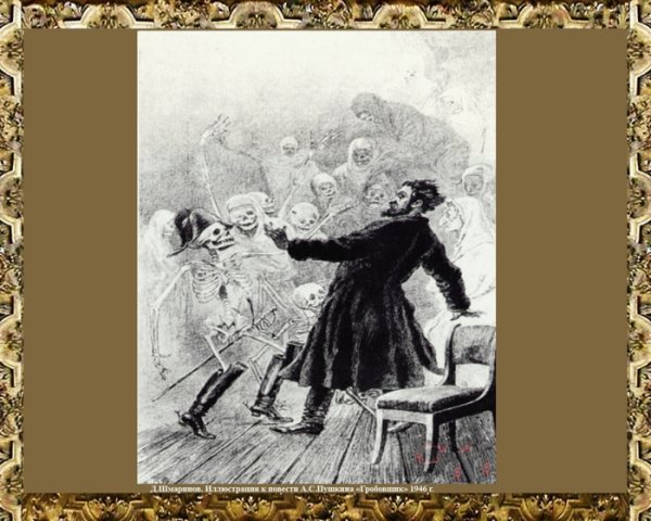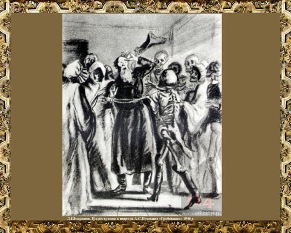 Иллюстрация к повести "Гробовщик" представляет собой зловещий и мрачный образ, раскрывающий основные темы произведения. На рисунке изображен мрачный кладбищенский пейзаж, окруженный густым туманом и мрачной атмосферой. В центре внимания находится гробовщик, одетый в черное, с холодным и безжизненным взглядом. Его лицо отражает жестокость и безразличие, его похожесть на смерть имеет символическое значение и усиливает впечатление о странности и загадочности гробовщика. Эта иллюстрация вызывает чувство тревоги и неопределенности, создавая непредсказуемую атмосферу, характерную для этой повести.
