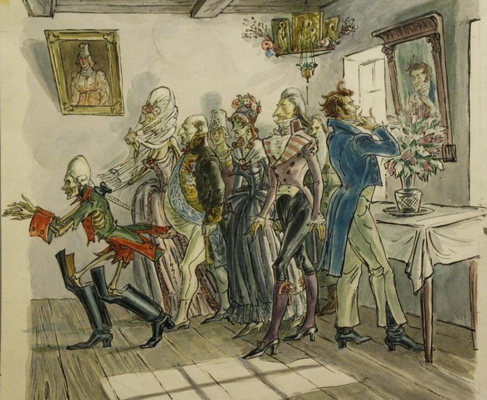 Иллюстрации к повести "Гробовщик" Александра Пушкина - это визуальное дополнение к знаменитому произведению классической русской литературы. Повесть, описывающая историю гробовщика, насыщена таинственностью, мистикой и глубокими философскими мыслями. Иллюстрации позволяют воплотить эти атмосферные идеи на страницах книги, создавая визуальное представление о событиях и персонажах. Они помогают увидеть мир, описанный Пушкиным, через глаза художника, раскрывая его символику и эмоциональную глубину. Используя различные стили и техники, иллюстраторы создают уникальные образы, которые помогают читателю еще глубже погрузиться в мир произведения и полностью ощутить его атмосферу. В результате иллюстрации к повести "Гробовщик" позволяют взглянуть на этот известный текст с новой, удивительной стороны и прочувствовать его сильные эмоциональные оттенки.