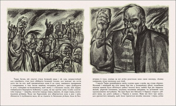 Иллюстрации Сергея Овчаренко к повести Н.В. Гоголя "Тарас Бульба" являются великолепным дополнением к этому классическому произведению. Овчаренко смог передать всю глубину и интенсивность эмоций героев, а также оживить образы и события, описанные в тексте. Его талантливые работы отличаются реалистичностью и проникновенностью, позволяя читателю более полно погрузиться в мир Тараса Бульбы и его сыновей. Каждая иллюстрация идеально сочетается с текстом и раскрывает его смысл, создавая уникальную атмосферу и визуальное впечатление. Интересные композиции и изысканные детали делают работы Сергея Овчаренко настоящим произведением искусства и придают новое измерение знаменитой истории о Тарасе Бульбе.
