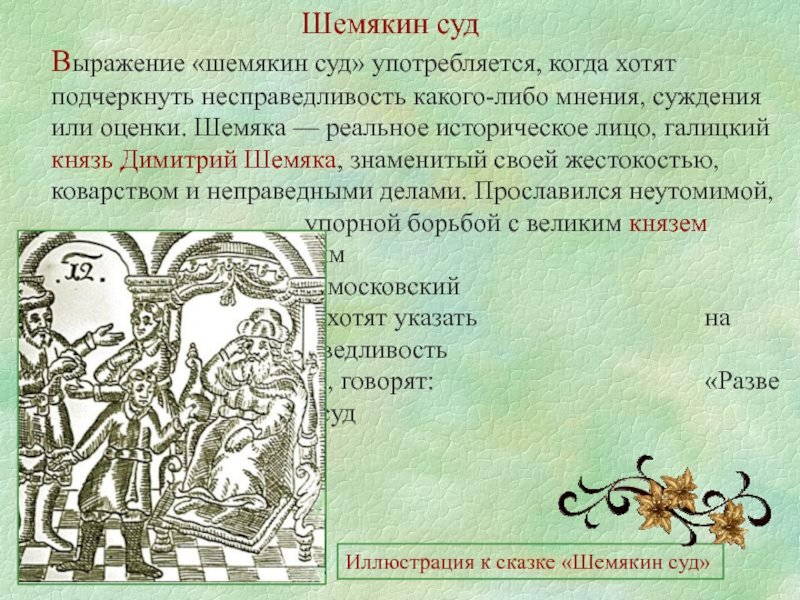 Шемякин суд - это увлекательная история, наполненная весельем, интригой и неожиданными поворотами. Главный герой, Шемякин, является забавным и немного наивным персонажем, который оказывается втянутым в сложное правовое противостояние. Судебные процессы, в которых он участвует, наполнены яркими иллюстрациями, которые позволяют окунуться в атмосферу событий и придать дополнительную живость рассказу. Встречайте юмористическую повесть о Шемякине суде, которая захватит ваше внимание и оставит приятные эмоции после чтения.