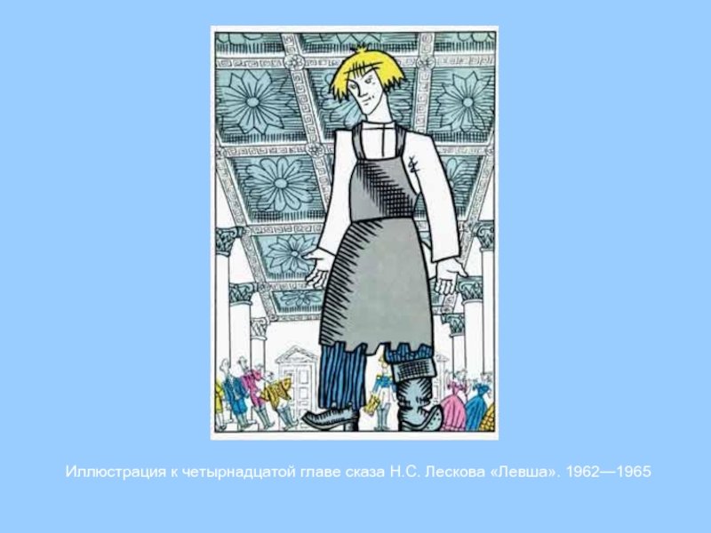 Иллюстрация к повести "Левша" легко погружает читателя в атмосферу загадочности и таинственности этого произведения. В ней изображена фигура молодого парня с необычно красивыми глазами, которые притягивают взгляд и вызывают любопытство. Он держит в руке незаконченную кисть, что символизирует его творческий потенциал и стремление к самовыражению. Фон иллюстрации окутан туманом, что добавляет еще больше загадочности и интриги к образу Левши. Эта яркая иллюстрация притягивает внимание и пробуждает интерес к чтению повести, заставляя задаться вопросами и желанием узнать больше о главном герое и его необычной судьбе.